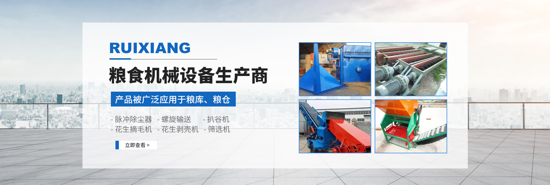 各种粮食输送机械,脉冲除尘器,螺旋输送,扒谷机,花生摘毛机,花生剥壳机,筛选机等粮食机械设备;各种矿山输送设备,波状挡边带式输送机,带式输送机,刮板输送机,皮带输送机等矿山输送设备。